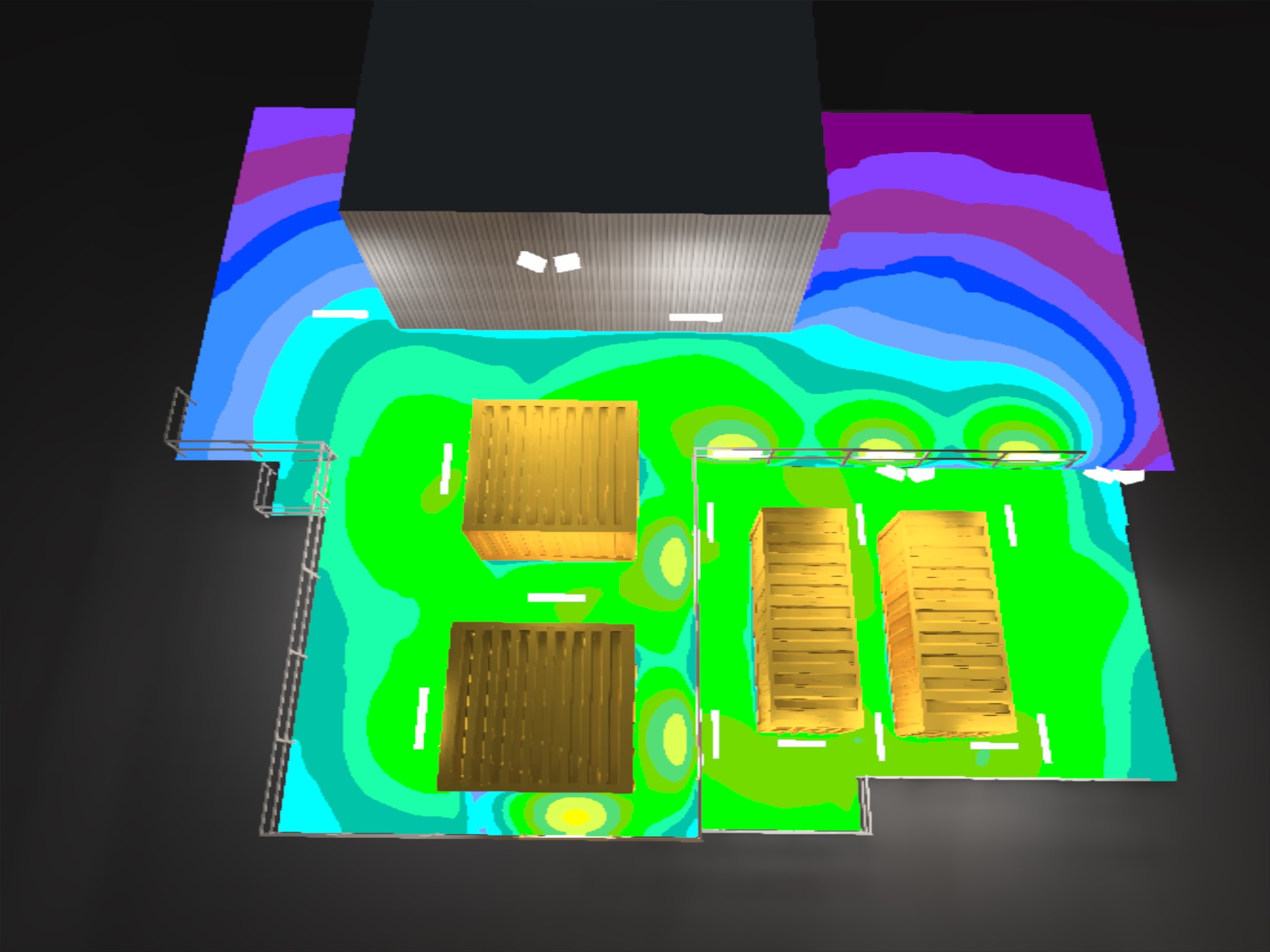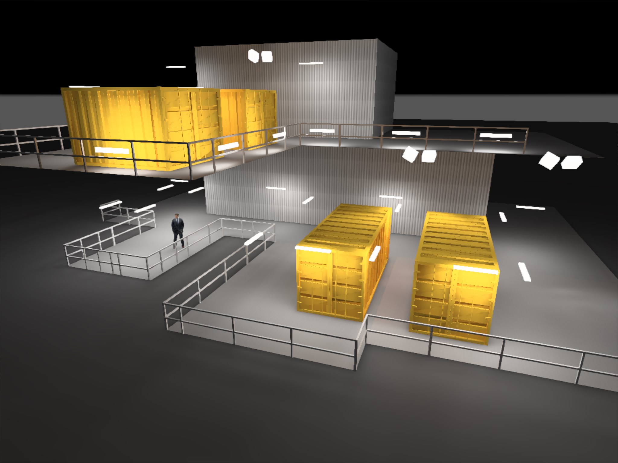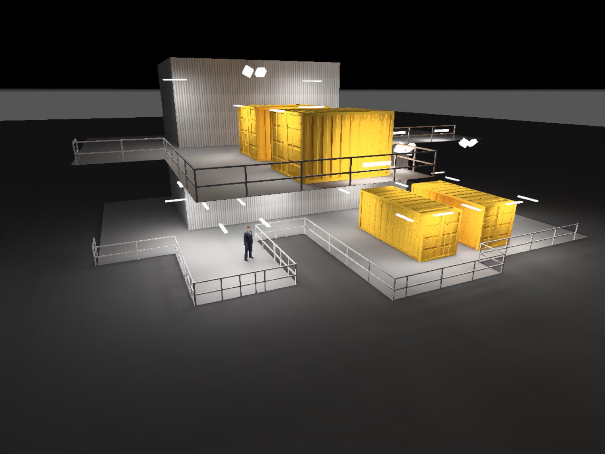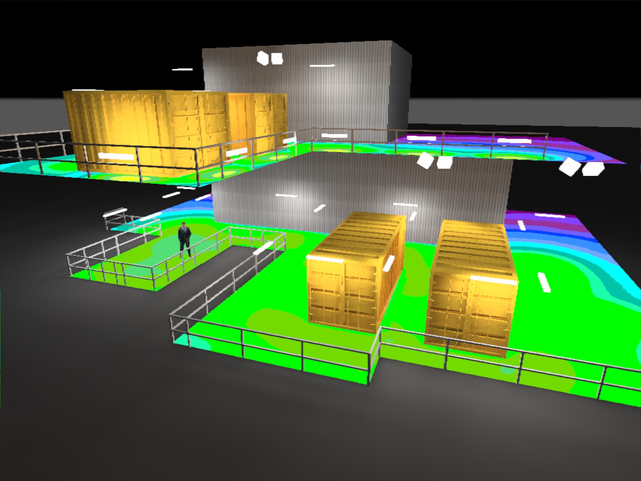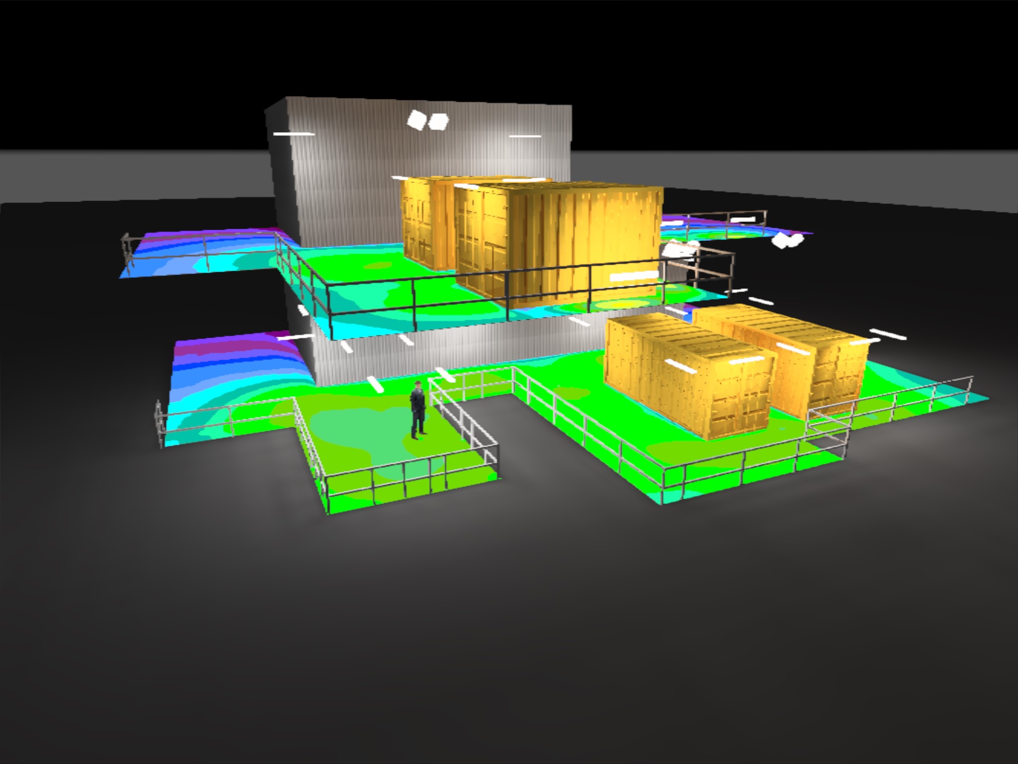The following are visualisations of the lighting design for a temporary generator locations on an offshore oil platform.