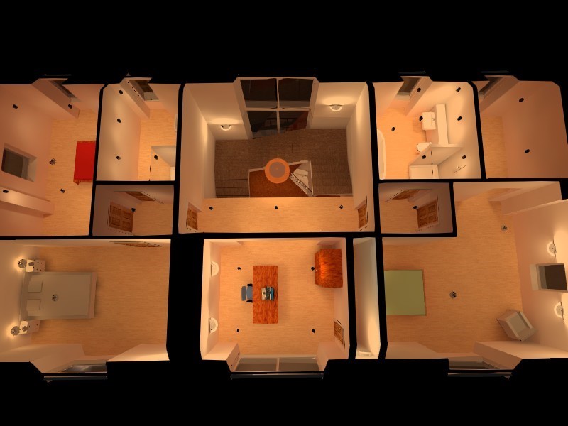 The following is a visualisation of the first floor central area lighting design