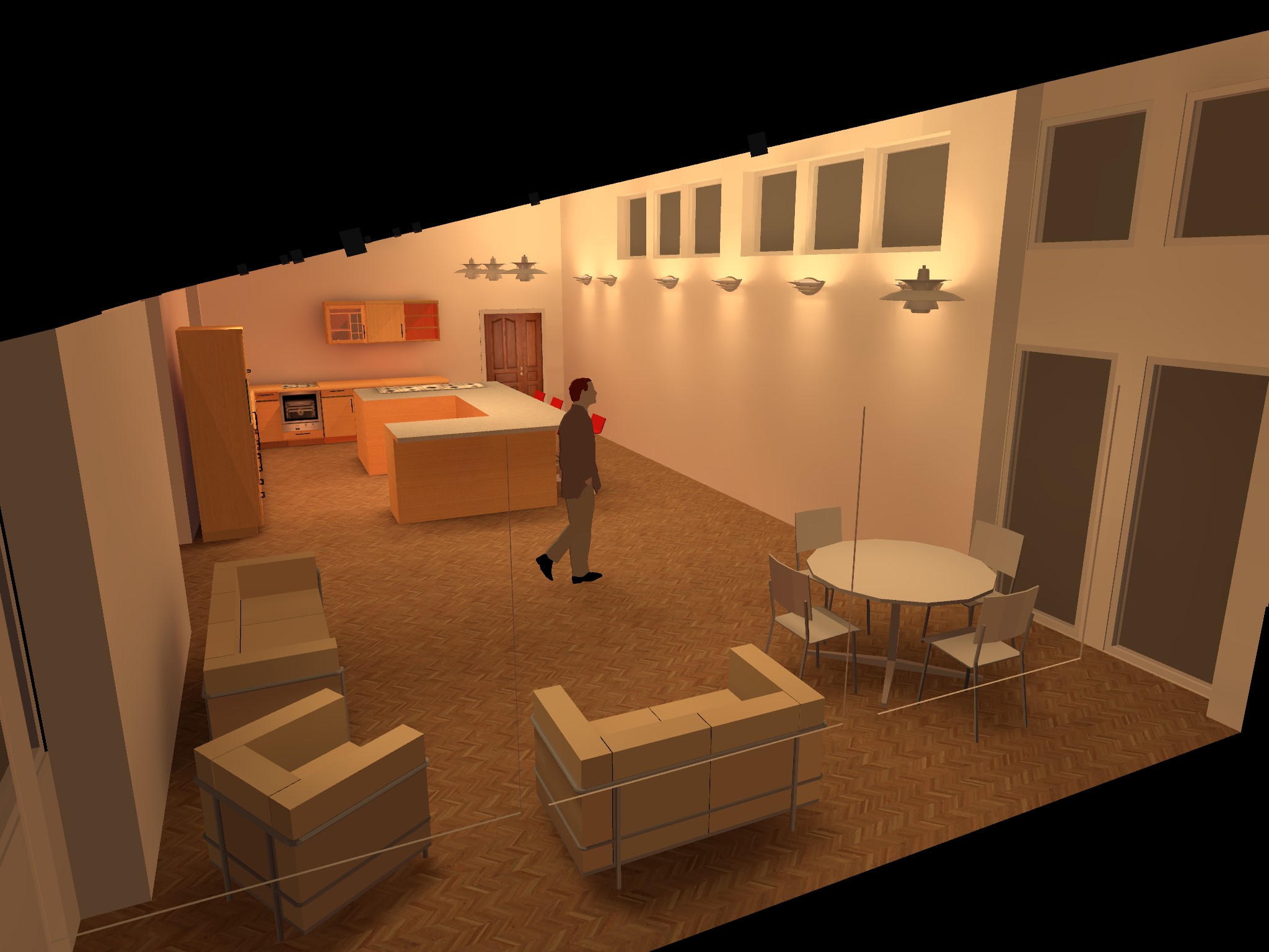 The following is a visualisation of the ground floor wing lighting design