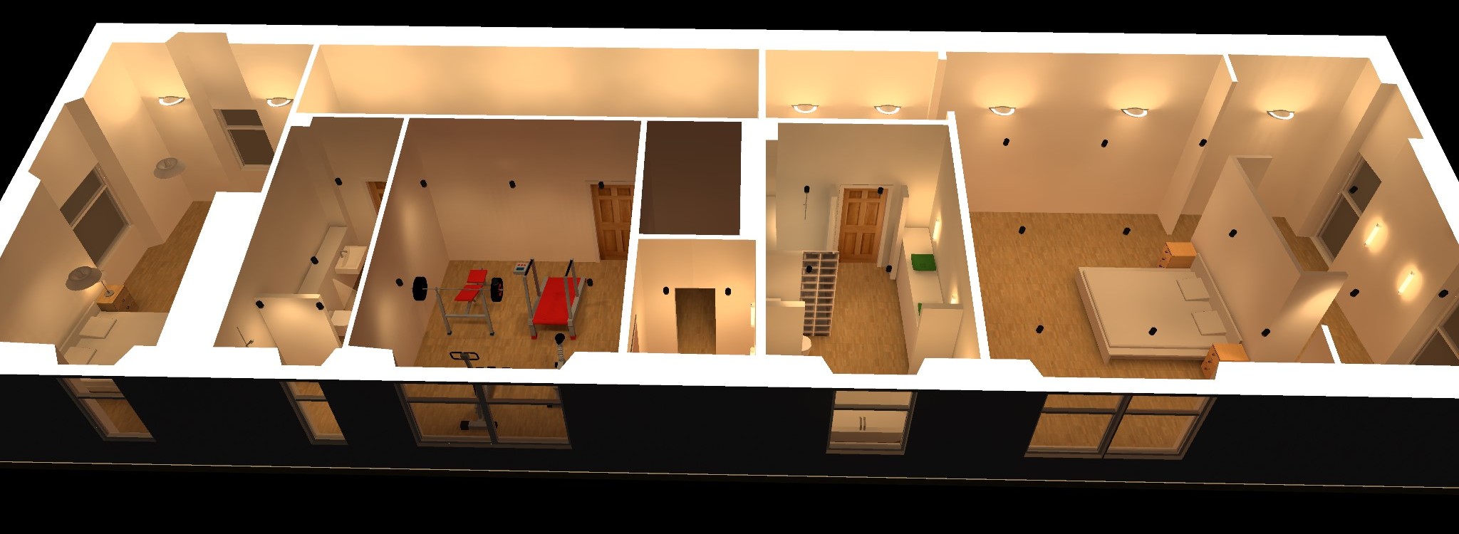 The following is a visualisation of the gym lighting design