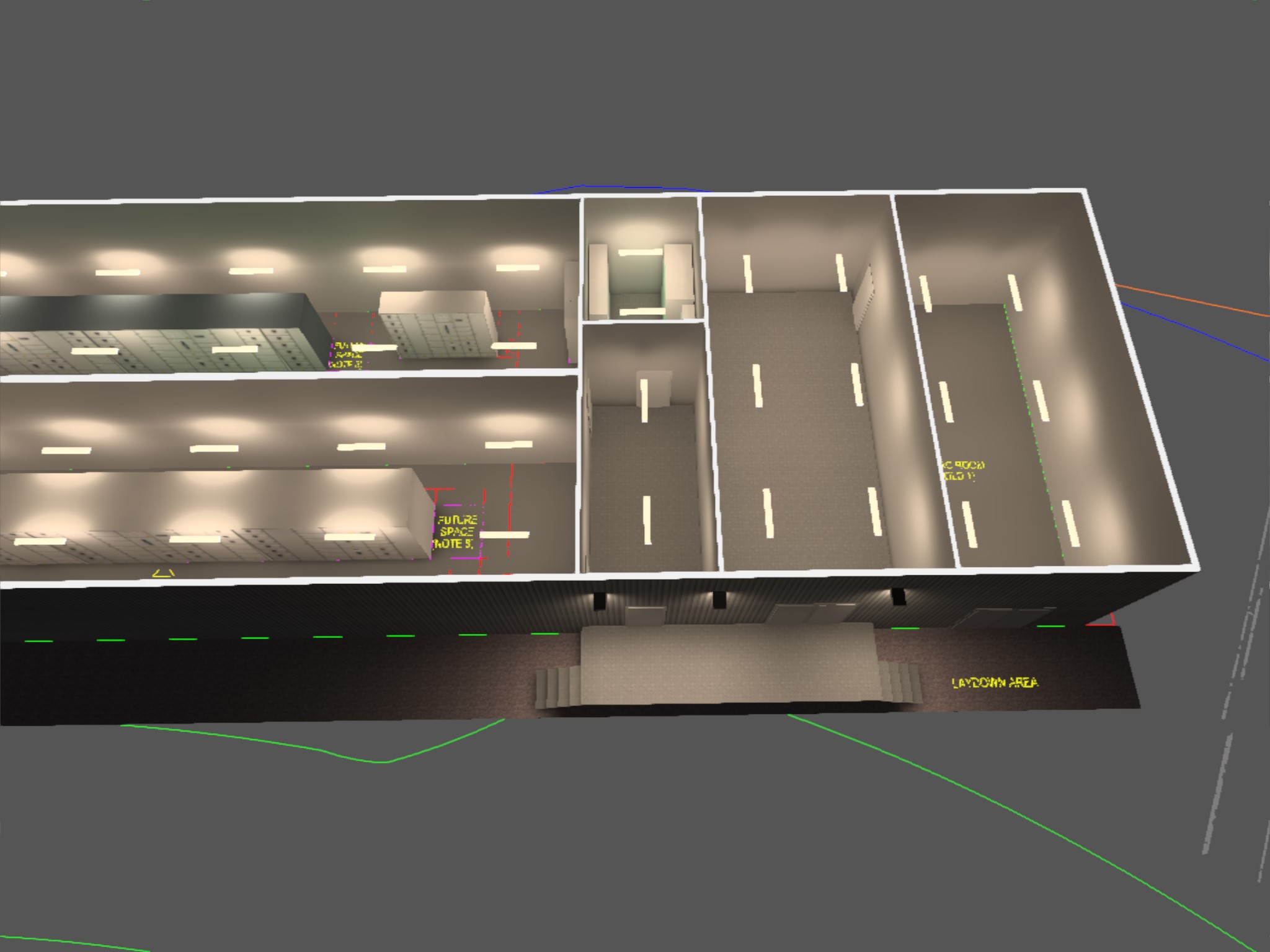 The following are visualisations of the lighting design for a package substation.