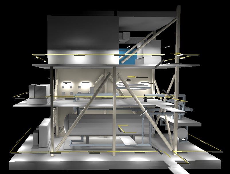 The following are visualisations of the lighting design for a new three level module which is to be installed on an existing offshore oil platform.